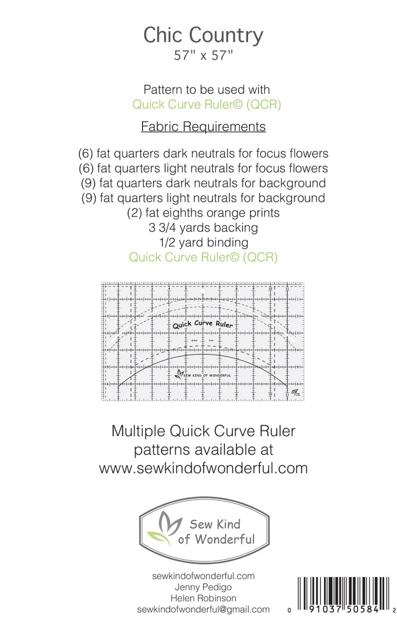 The Quick Curve Ruler and Sew Square 6 are the perfect combination for creating Chic Country. Squaring each unit makes this very complex design quick and easy. Our easy curved sewing method takes the stress out of sewing with bias edges.