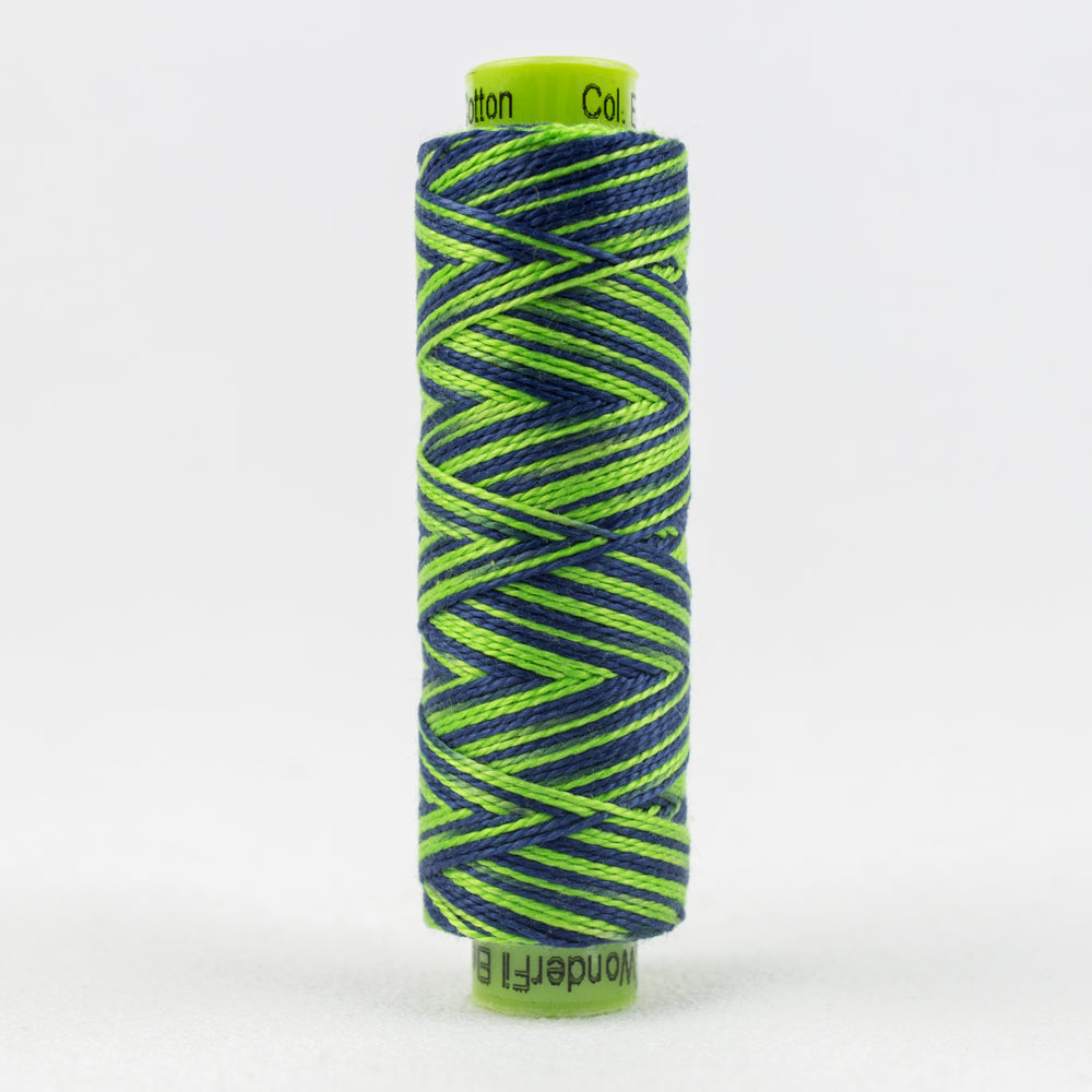 This gorgeous 8wt, random dyed contrasting variegates, 2-ply 100% long staple Egyptian cotton thread is double-gassed and mercerized, resulting in a wonderfully smooth and lustrous surface that allows the thread to glide beautifully through all types of fabrics and fibres. The thread’s tight twist creates beautifully firm stitches while its surface sheen produces a luxurious finish to embellishment stitchery.