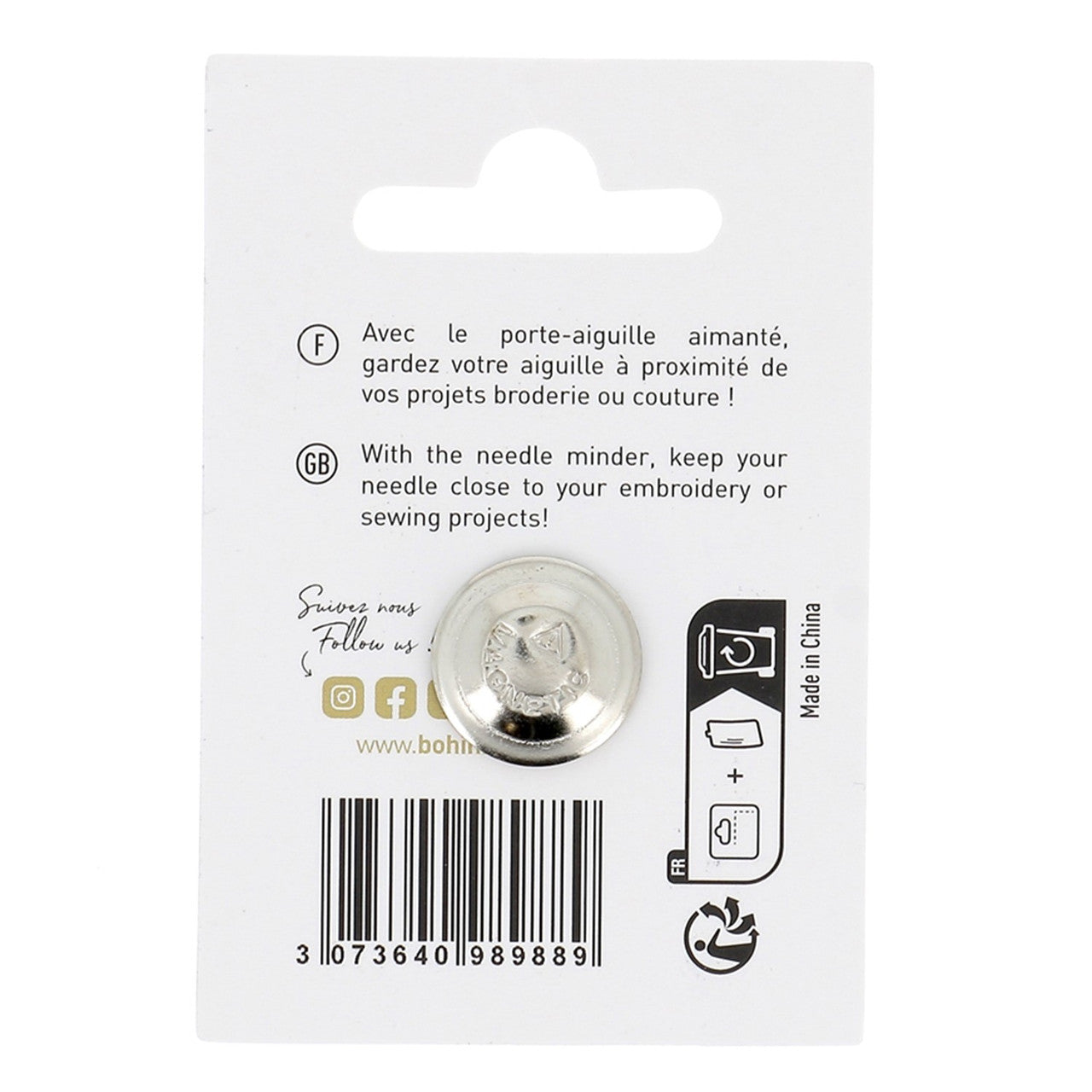 With the needle minder, it’s so easy to keep your needle close to an embroidery or sewing project! Discover our exclusive BOHIN pop and colorful designs! These 6 beautiful, fun and humorous items allow you to offer a complete assortment to your customers! Useful! It keeps your needle close at hand. Attractive! Find it at a glance (diameter 28mm / 1’’). Easy! Its integrated magnet allows an effortless magnetic fastening. Gorgeous! A range of 6 designs to please the greatest number of users.