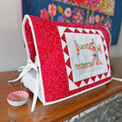 Stitch Lovely is both a cross stitch and fabric kit in one that makes a stunning sewing machine cover. The front cover sample is stitched on White Aida and made into a sewing machine cover using Crimson Dotty Thatched and Blizzard Thatched by Robin Pickens for Moda fabrics.